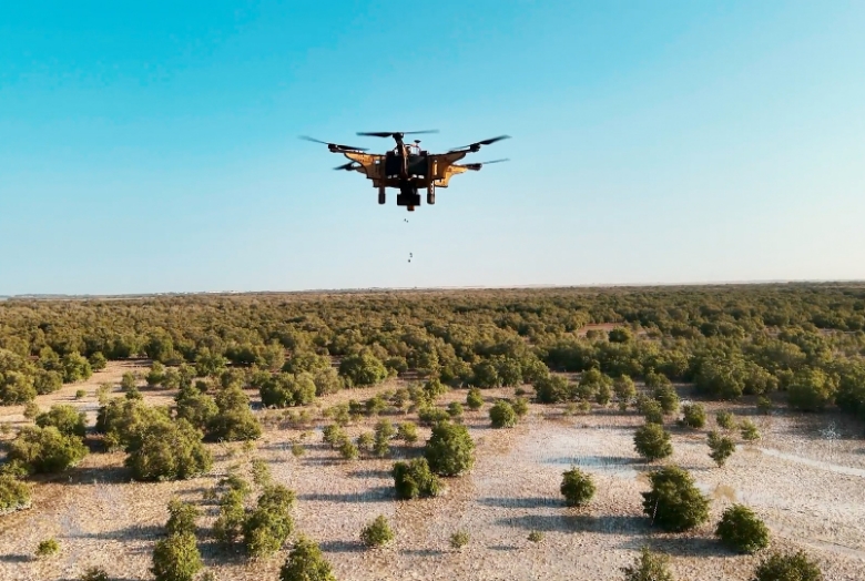 مشروع وطني مبتكر يستخدم طائرات بدون طيار مدعومة بالذكاء الاصطناعي لإعادة تأهيل غابات القرم في إمارة أبوظبي، حيث تم حتى الآن زراعة أكثر من 9.5 مليون بذرة.